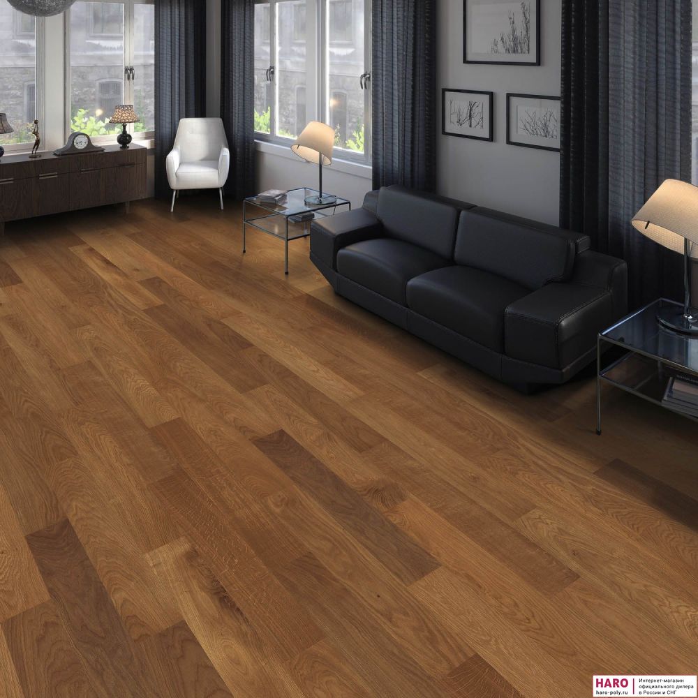 Инженерная доска Haro Дуб Дымчатый 540180 — покрытие из натурального дуба для внутренней отделки помещений.