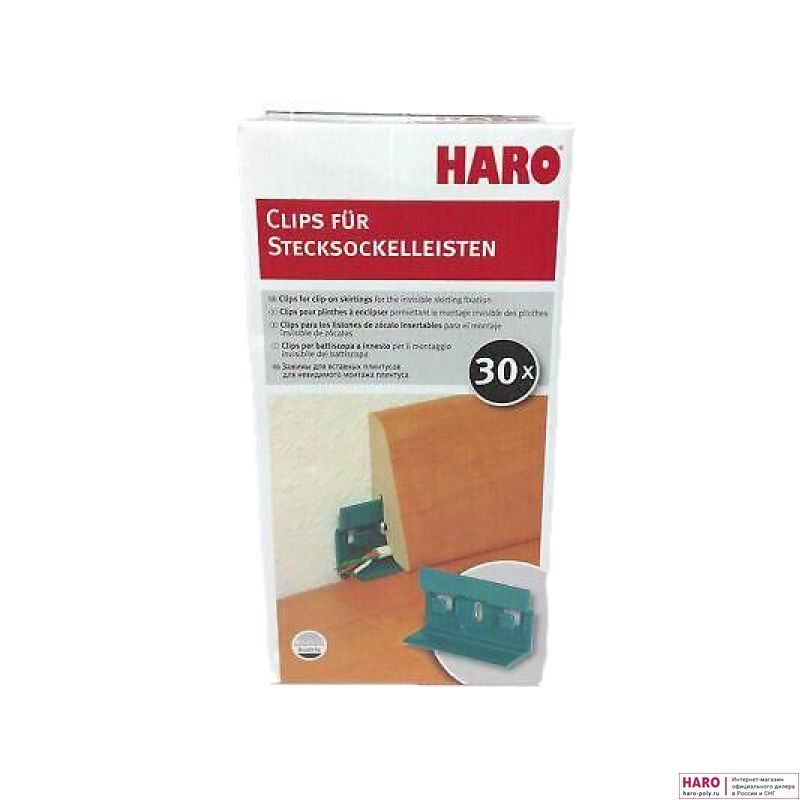 Клипсы для монтажа плинтусов HARO предназначены для крепления плинтусов HARO после укладки ламината. В упаковке 30 клипс, которых хватает приблизительно на 15 метров плинтусов. Плинтус прочно садится на клипсы и после монтажа его невозможно сбить при уборке пылесосом или шваброй.