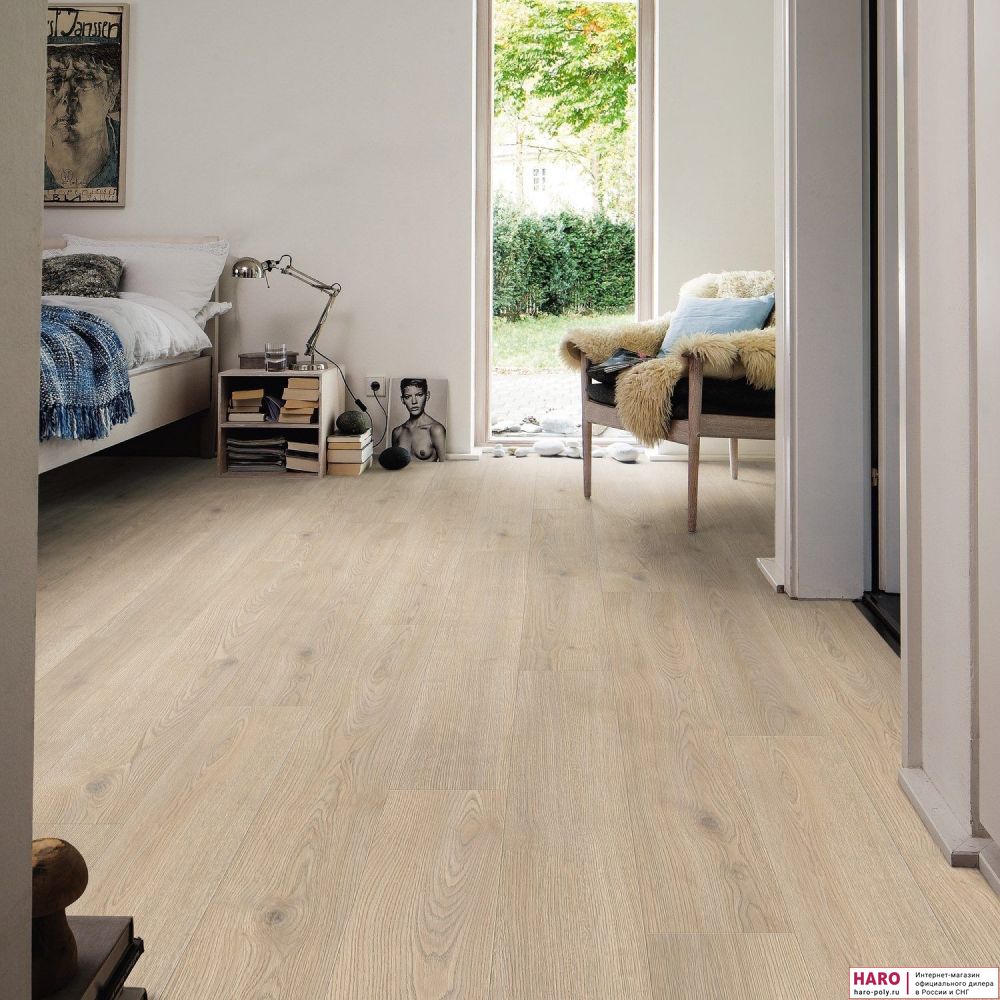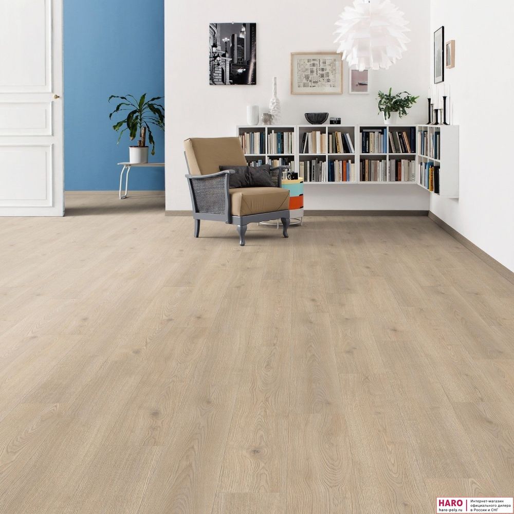 Ламинат HARO отлично подходит для теплого пола водяного или электрического типа. Прочная поверхность и замки 5-го поколения Топ Коннект легко выдерживают повседневные нагрузки и тяжелую мебель. Укладка ламинатной доски происходит очень быстро и просто с помощью пластиковой защелки в замке. С помощью дополнительного крепежа ламинат можно монтировать и на стены.
