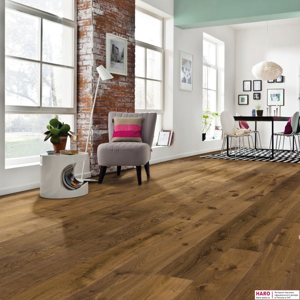 Паркетная доска Haro Дуб Мореный Саваж 538949 — натуральное покрытие из древесины дуба высочайшего качества, изготовленное с использованием передовых технологий и многолетнего опыта работы с деревом мастеров Haro.